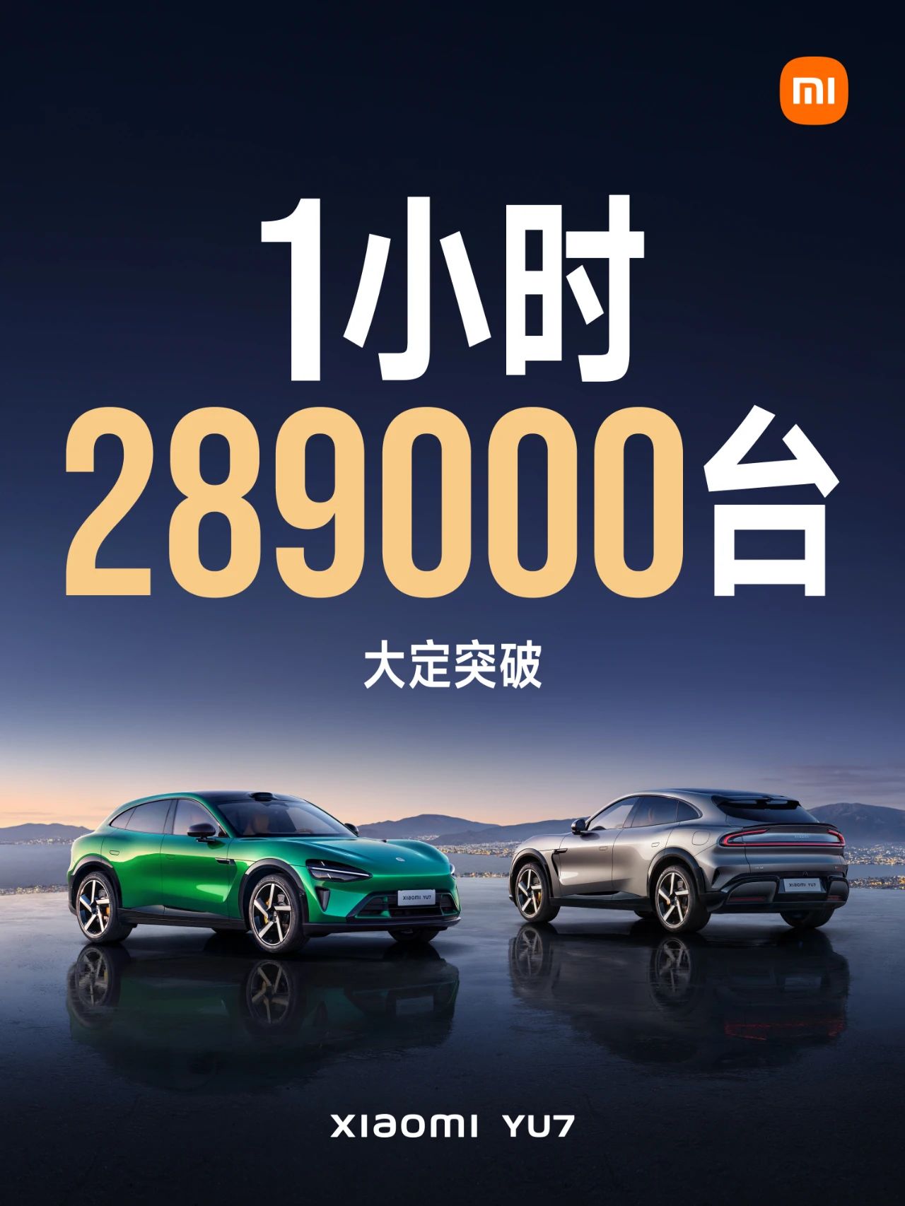 小米YU7预售开启一小时大定突破289000台。图 / 小米汽车官方