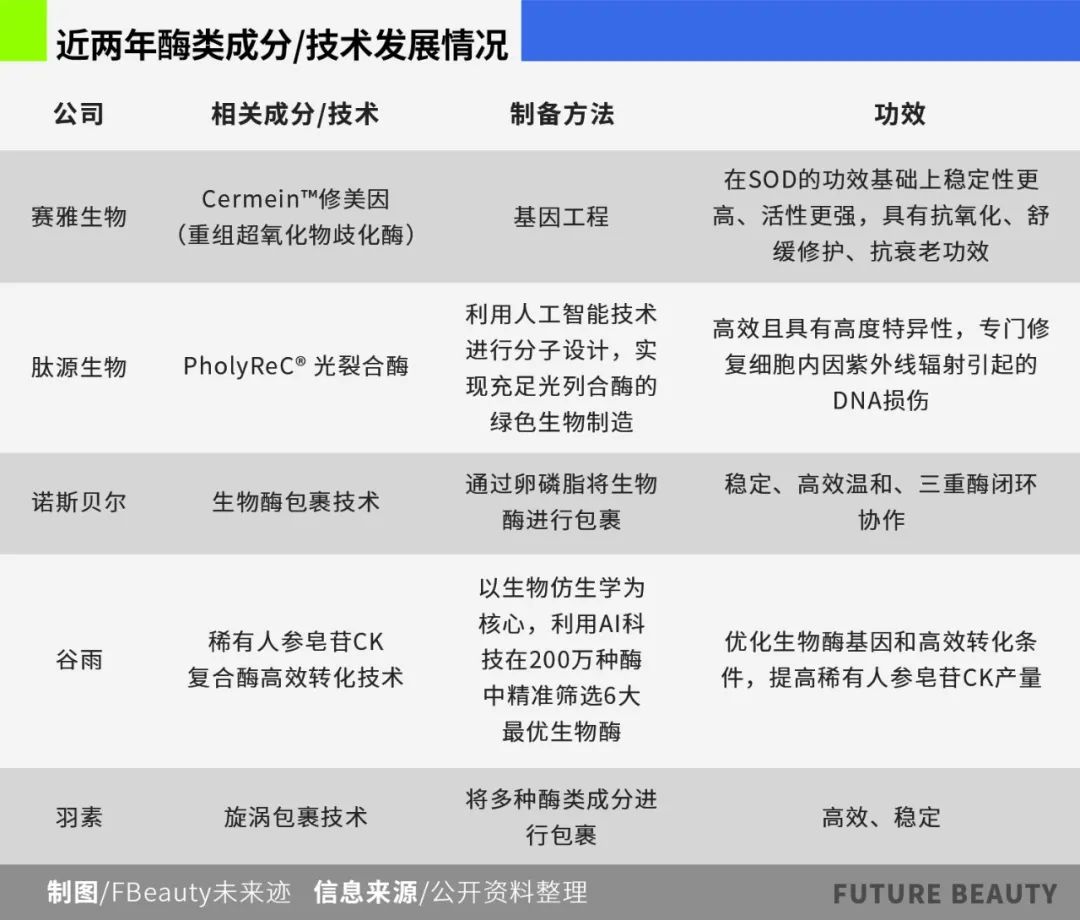 《FBeauty未来迹》整理发现,近两年国内外美妆品牌们推出的添加酶类成分的护肤品中,也是这三类酶成分居多。