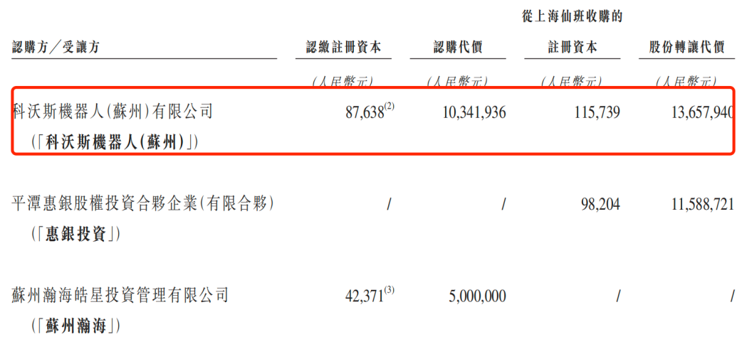 2020年9月,仙工智能进行A轮融资,科沃斯以1034.19万元认缴仙工智能8.76万元注册资本。