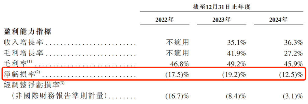 报告期内,仙工智能的净亏损率分别为-17.5%、-19.2%和-12.5%;毛利率分别为46.8%、49.2%和45.9%,2024年的毛利率有所下滑。