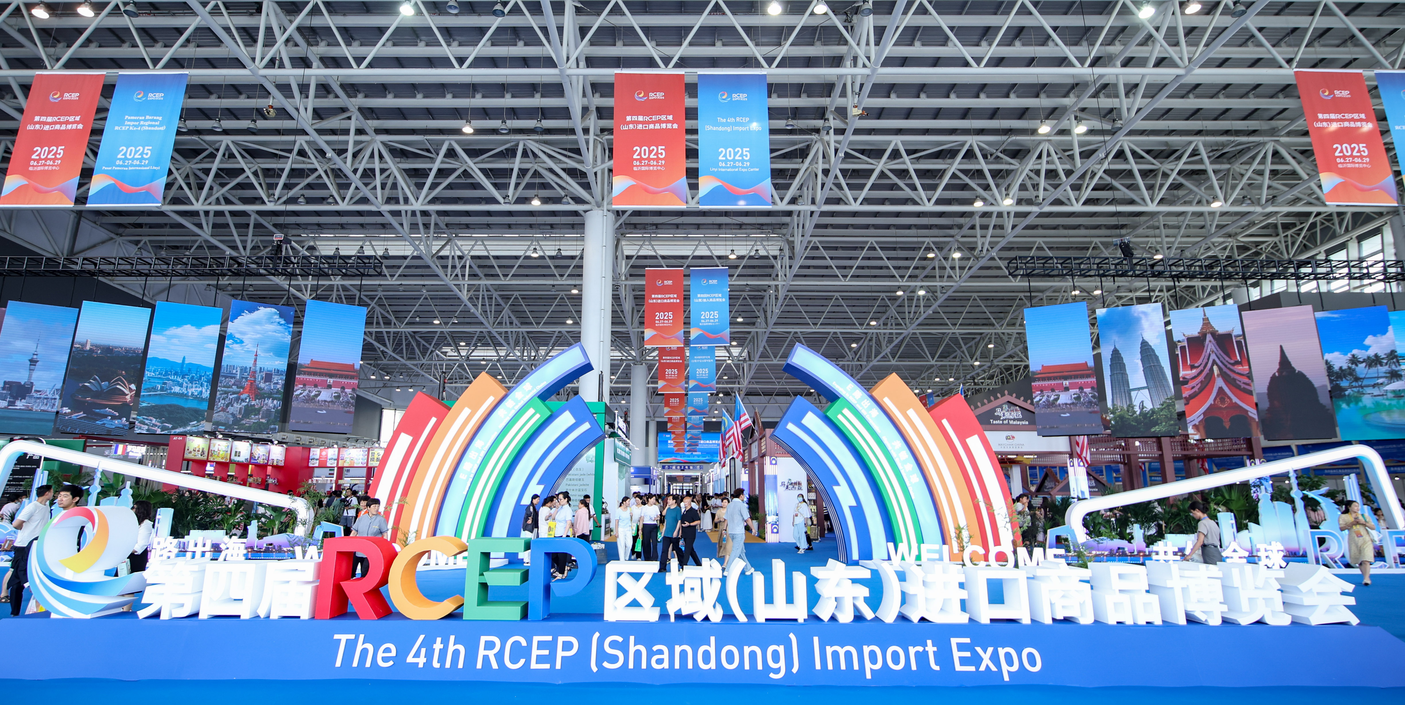 第四届RCEP区域(山东)进口商品博览会于6月27在临沂开幕。本届博览会企业参展348家,展览面积3.5万平方米,设置1200个国际标准展位,开展首日累计到会观众1.5万人次。