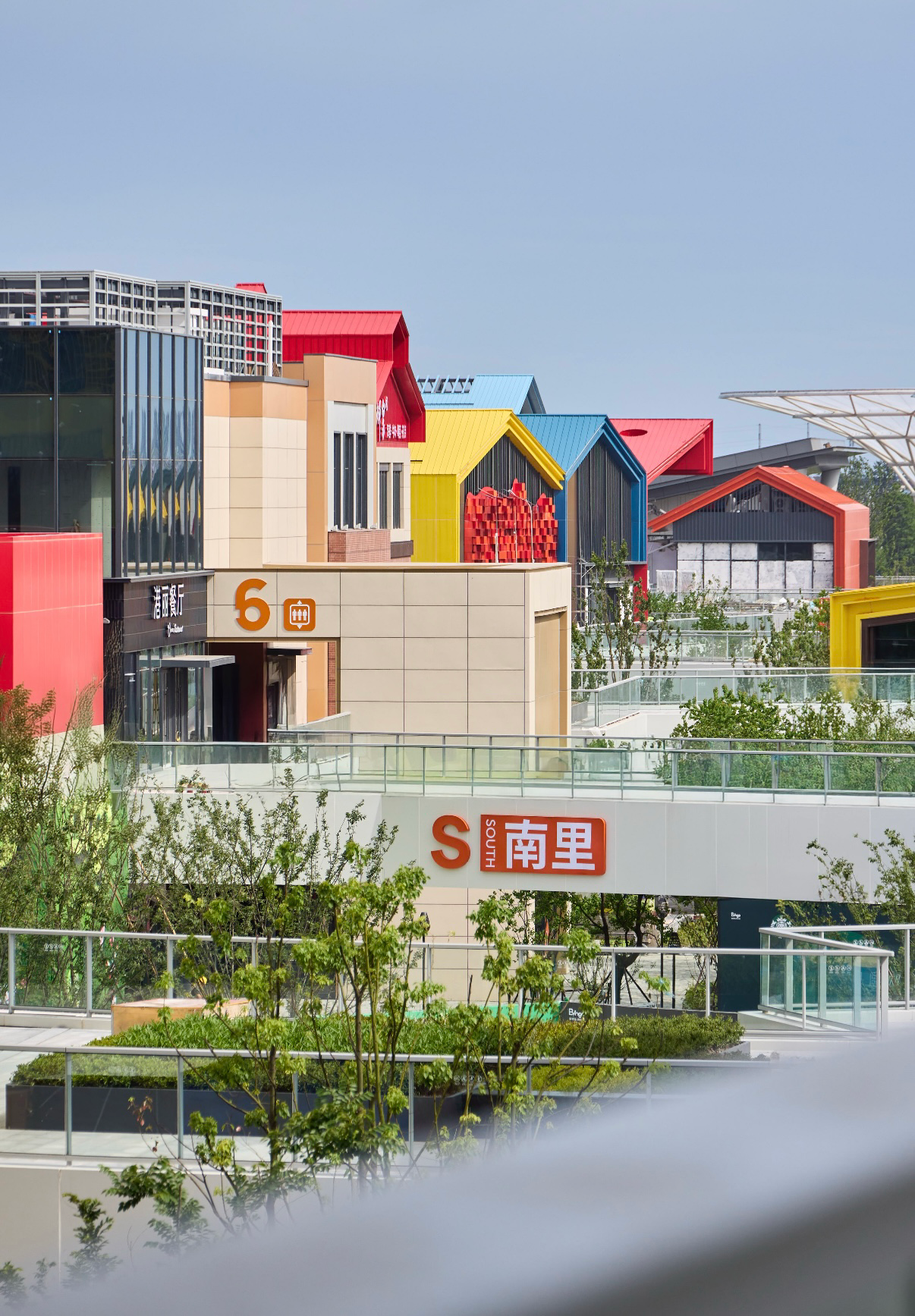南里 | 缤纷欢聚生活: 以漫游街区形态打造,将传统都市与工业风进行当代创新演绎,融入街道、小巷与木板路的矩阵设计中。屋顶层叠退台与中心广场共同构筑了丰富的多层次社交空间。南里致力于创造缤纷欢聚生活,重点汇聚IP潮玩、餐饮首店等丰富业态,是欢聚、打卡与体验圈层文化的核心区域。