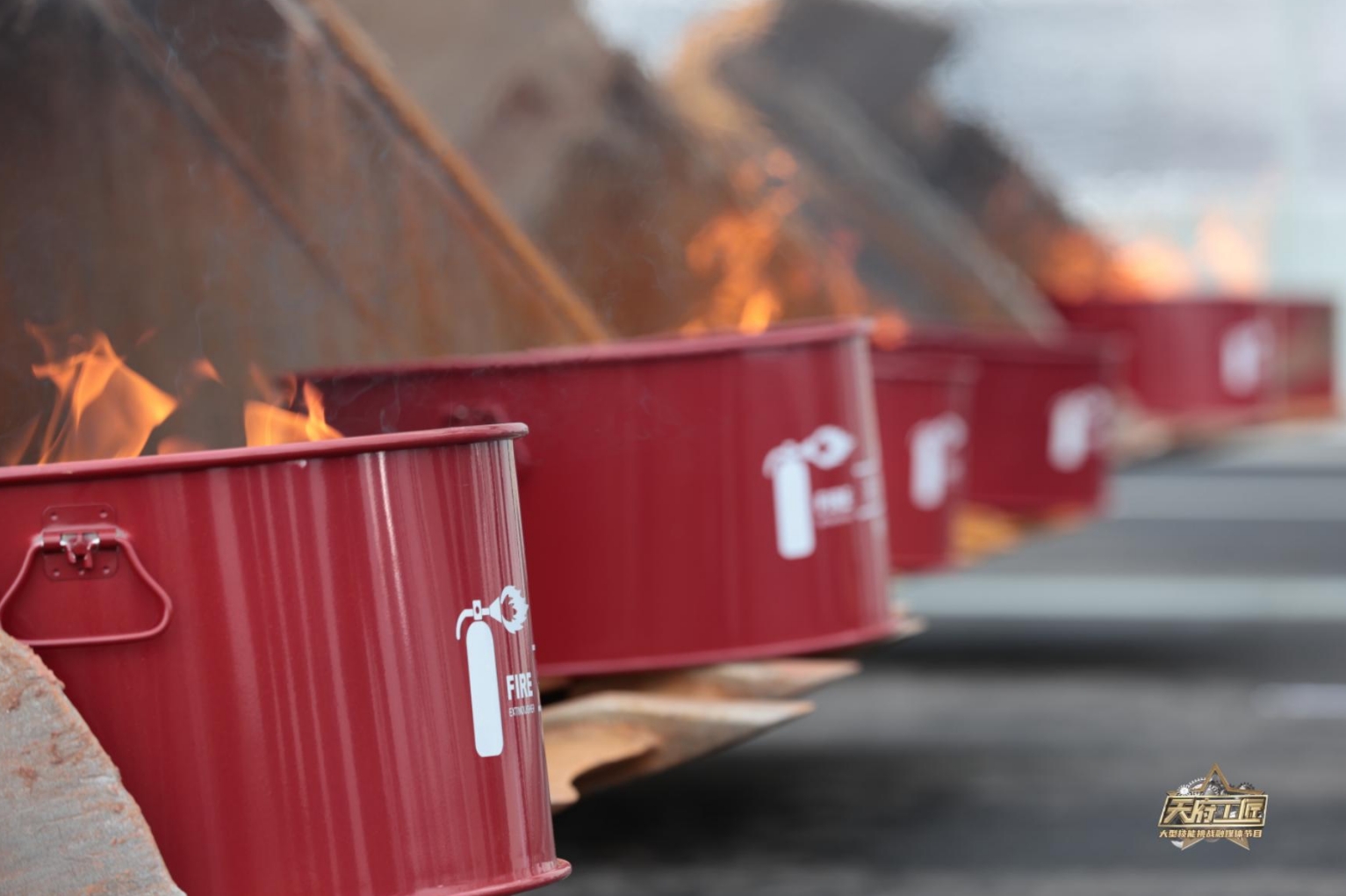 在录制中,四名低空经济领域的优秀工匠带来了四个精彩的挑战项目,其中,成都交投航投集团“翼航”低空经济青年志愿服务队三位飞手钟浩文、梁梦凡和戚浩东,共同挑战《神兵天降》项目。三辆装载机各托举两个直径60cm的火盆沿直线做匀速往复运动。三位挑战选手需操控无人机在10米高空移动投掷灭火弹,谁能率先扑灭两个火盆,则挑战成功,这个项目对飞手对无人机的操控能力考验巨大。