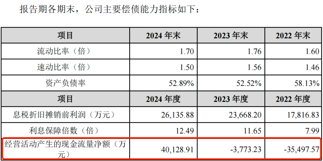 报告期内,道生天合的经营现金流净额分别为-3.55亿元、-3773.23万元和4.01亿元,2022年和2023年都在“失血”状态。