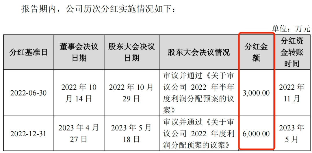 招股书显示,2022年和11月和2023年5月,道生天合分别分红3000万元和6000万元,合计分红9000万元。按照持股比例计算,超一半分红都到了实控人季刚夫妇的口袋里。