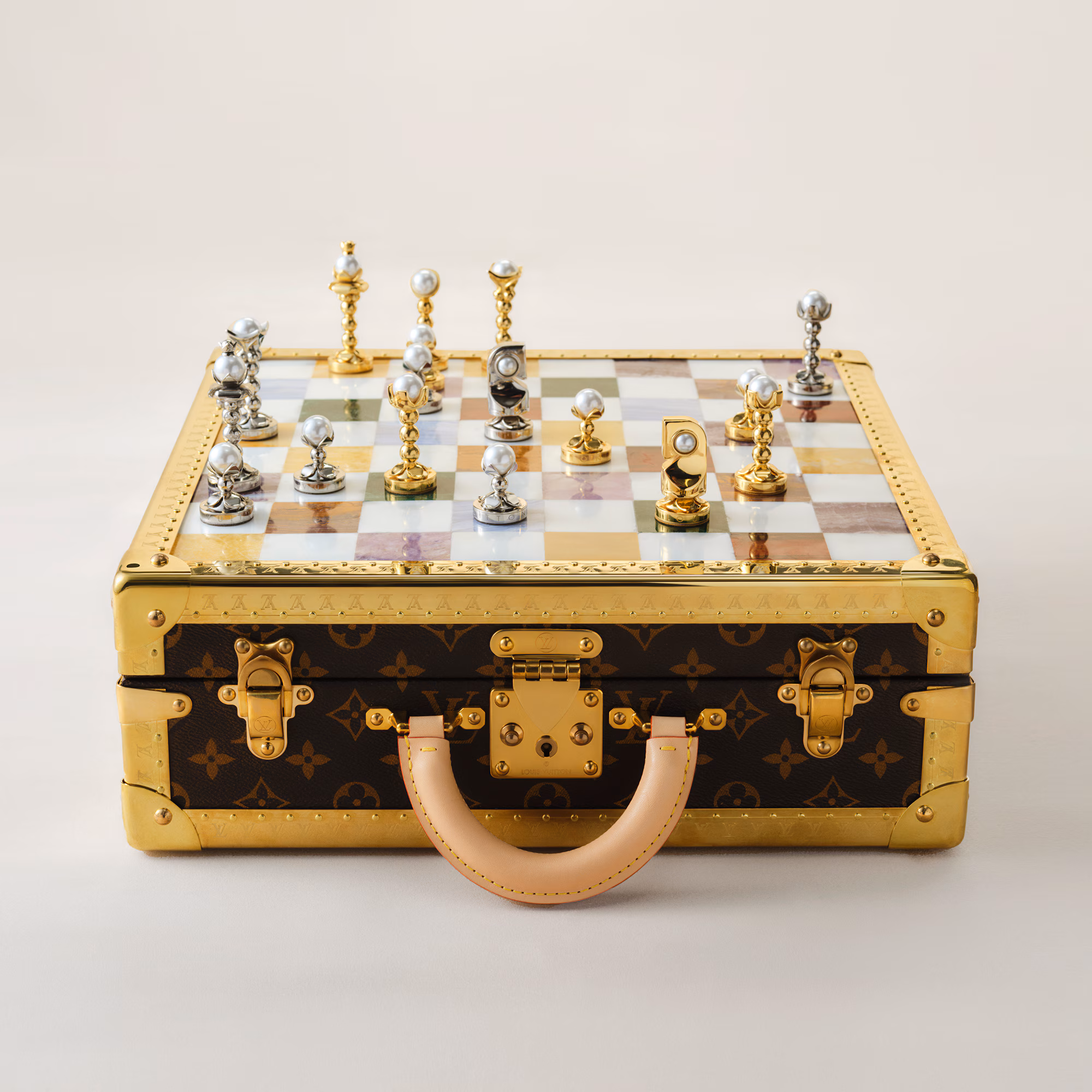 秀场设计也有巧思,将传统的蛇梯棋放大为真人大小的建筑,透过文化融合重新建构标志性的 Damier 图案——将观众和模特儿转变为一个充满可能性的隐喻舞台上的玩家。