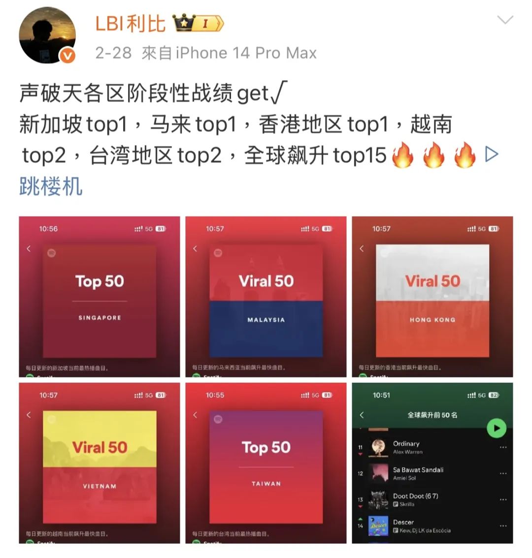 ▲ 《跳楼机》演唱者LBI利比在社交媒体分享战报。图 / 微博截图