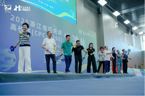 据悉,近两年来,宁波高新区立足打造‘匹克球示范区’战略目标,在推动项目普及与竞技水平提升方面取得显著成效。基础建设方面,已率先实现区内6所中小学匹克球场地全覆盖,含15片匹克球场地的三官堂下匹克球公园正在建设,预计下半年可建成投用,为项目长远发展奠定了坚实的硬件根基。除了本次CPC-U250高校赛,下半年,高新区还将举办CPC-J180和CPC1000两场国家级赛事。人才引进方面,引进了‘亚洲一哥’陈致宽、WPC世界匹克球锦标赛冠军15岁少年何泳霖等匹克球专业人才,为宁波体育强市建设注入新的生机和活力。产业发展方面,依托区域优势,推进宁波市产品食品质量检验研究院与国家体育总局下属北京国体世纪质量认证中心有限公司签订合作协议,成为其认可实验室,开展全国匹克球器材检验检测服务,同步助推宁波的匹克球生产企业拓展全国市场。除此之外,高新区正加快引进匹克球生产和赛事运营企业,推动匹克球生产制造、检验检测、赛事运营、培训推广全产业链发展。
