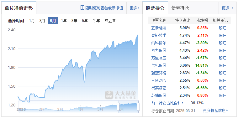 首先,该基金持仓集中于传统装备制造(如潍柴重机、泰豪科技),而忽视机器人、工业母机等新兴赛道。