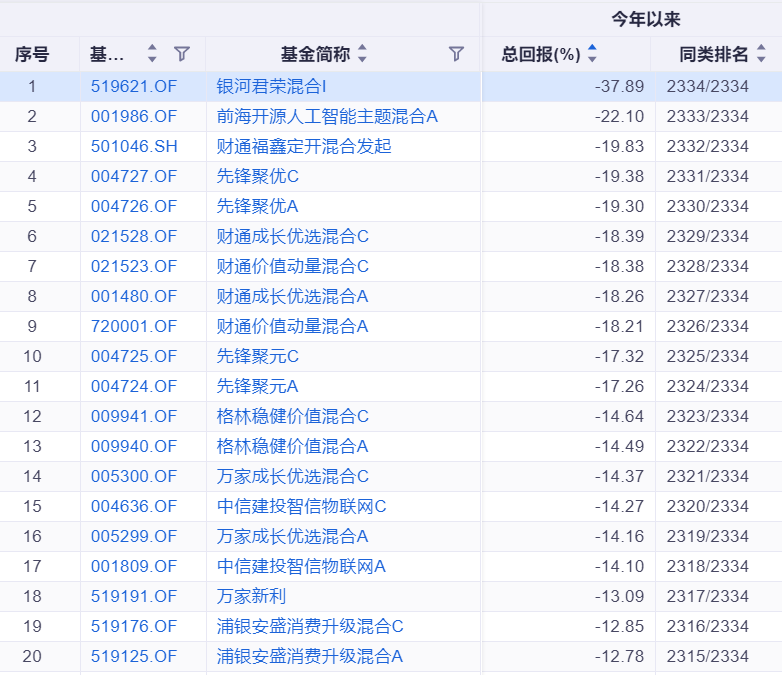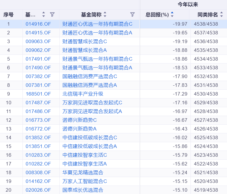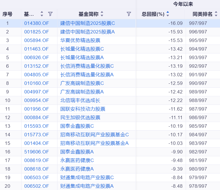 如果说排名靠前的基金,大多幸福是相似的,那么排名落后的产品,基本上是各有各的不幸。