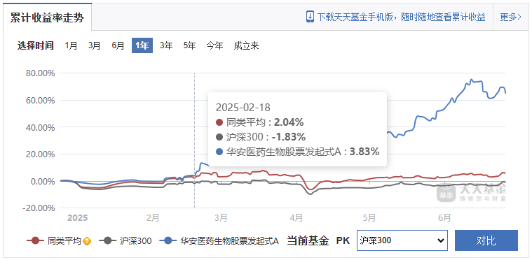以收益排名第一的华安医药生物A为例,该基金规模不足2000万元,原本一直表现平平,但受到医药板块风口的影响,自今年2月起,其收益逐步攀升,明显超越同期沪深300指数表现。