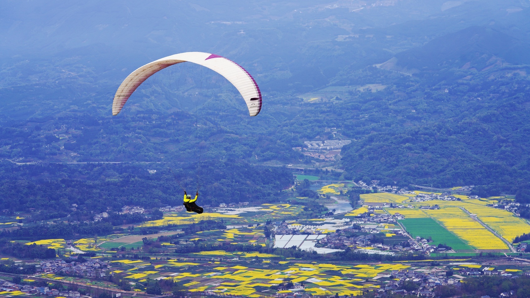 “低空+”拓展山岳生态游新维度。洪雅县玉屏山瞄准低空经济风口,推出滑翔伞、动力三角翼等低空游览项目,游客在云端鸟瞰万亩林海,体验一览众山小的震撼。当地还将探索无人机+VR沉浸式体验、水上滑翔特色运动等创新应用场景,进一步丰富旅游和经济业态。当天空的维度被全面打开,生态游的半径也由此延伸。