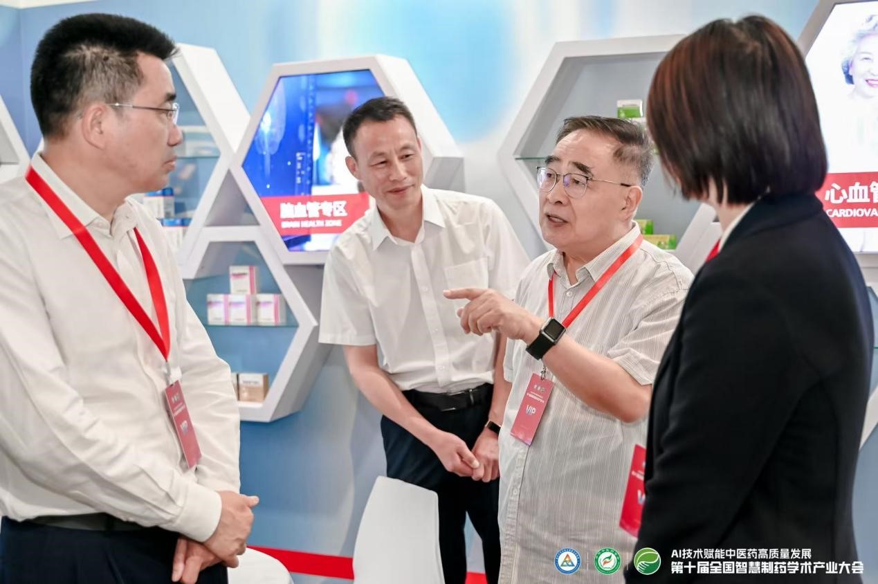 在展台互动环节,张伯礼院士详细了解了天士力在智能制造与研发创新领域的实践成果。天士力自2014年起便全面推进全产业链信息化管理。在研发领域,天士力建立研产销投一体化(IPD)体系,全年完成3项新药注册申报及7项临床研究申报,2024年在研管线涵盖98款产品,其中33款为1类创新药,22款处于临床II/III期阶段。天士力以全产业链数字化与研发创新双轮驱动,为中药产业现代化树立了典范。