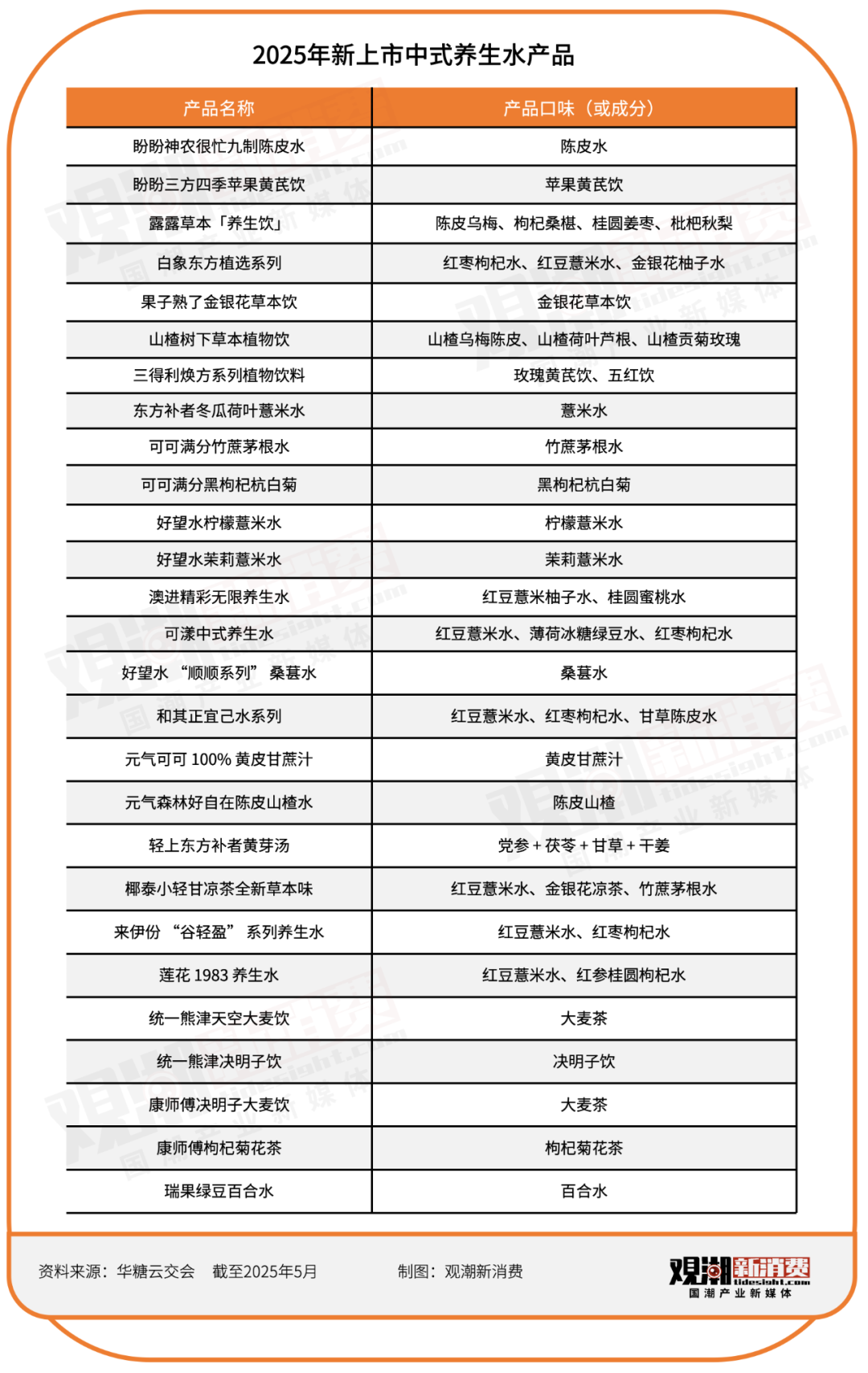 卷到2025年,中式养生水赛道变得更加拥挤,产品让人眼花缭乱,产品成分重合度也较高。