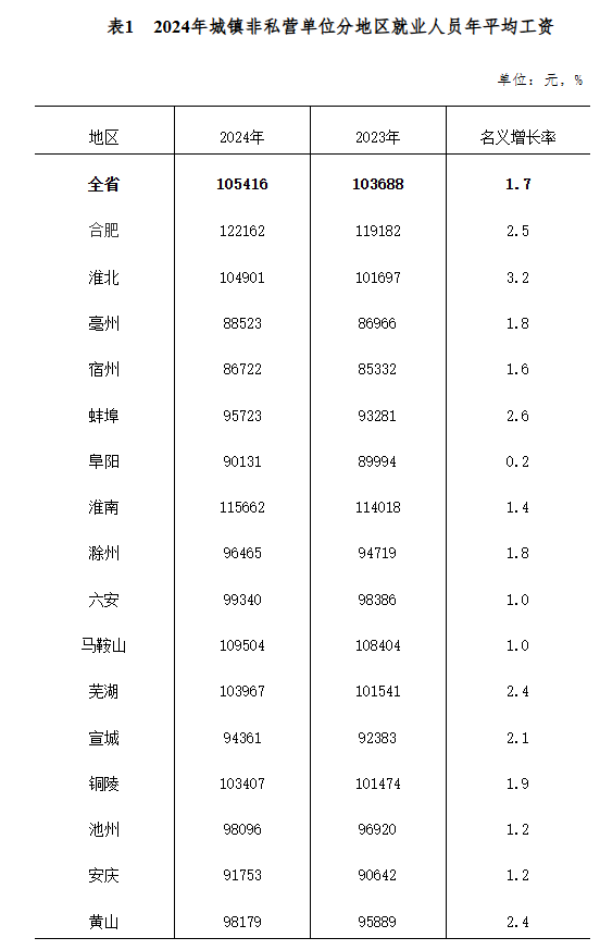 近日,安徽省统计局公布了2024年安徽省城镇非私营单位、私营单位就业人员年平均工资。