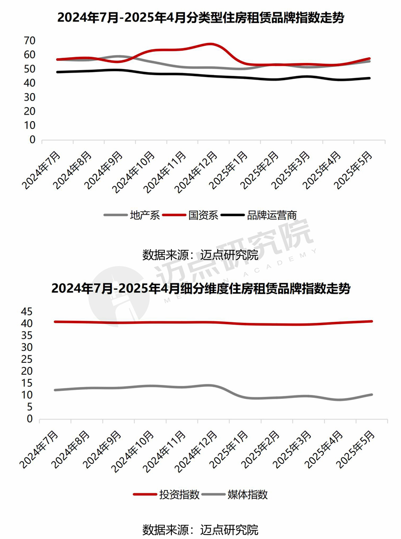 品牌指数分析:“投资回报”关注度远超“媒体发声”。2024年7月至今,从细分类型来看,品牌指数较为稳定,且国资系品牌在媒体的发声力度加大、扩张速度加快,品牌指数占据相对优势。从细分维度来看,品牌投资指数远高于媒体指数,且媒体指数呈现下滑趋势。