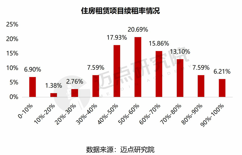 续租率:四成以上项目续租率60%以上,国资系企业竞争优势显著。项目续租率在50%-60%和40%-50%的占比较高,分别为20.69%、17.93%;合计约四成以上续租率在60%以上。其中,国企背书下项目续租率表现优异,例如寓见安居·萃云阁、港城中环汇·领寓、宁巢钱塘公寓等项目续租率高达90%-100%。