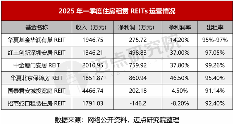 REITs表现:总体运营稳健,扩募与新发加速。从6单发布的2025年一季度财报数据来看,营收规模、盈利表现、出租率呈现出显著分化,但总体运营稳健。具体而言,国泰君安城投宽庭REIT以4466.74万元收入领先,其余产品营收在2000-3000万元之间。华夏北京保障房REIT凭借860.94万元净利润和46.5%的高净利率排名第一。中金厦门安居REIT以99.26%的出租率接近满租状态。城投宽庭REIT以3.2%的年化现金流分派率居首。