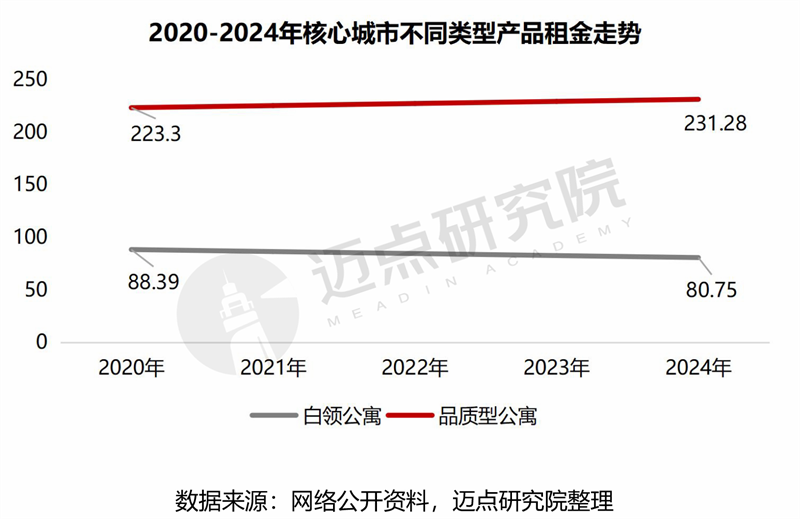 当前,我国住房租赁需求来源以高校毕业生及职场白领为主,租客群体和年龄逐渐多元化,20-29岁和30-39岁的租客占比分别达到42%、38%。租户需求方面,50平方米以上户型占比25.4%,占比较2020年上涨11.2个百分点,产品品质需求逐步释放,租金并非唯一敏感点,数据显示,品质型公寓租金近几年逐步走高,而白领公寓租金呈下滑趋势。