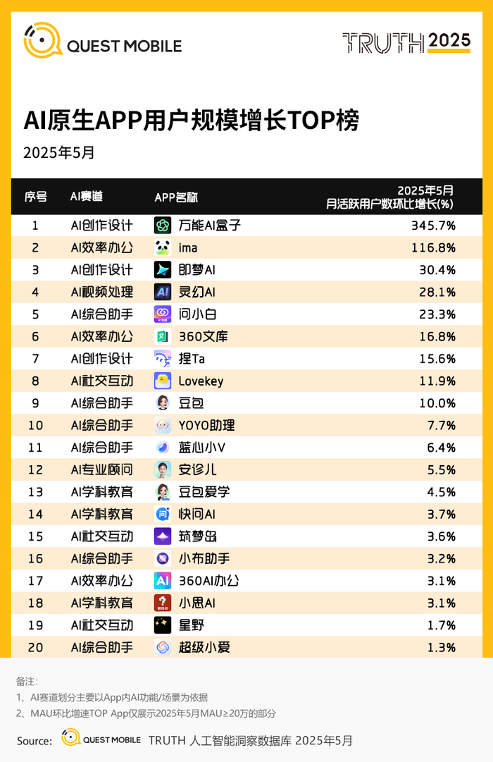 1、AI原生APP用户规模增长TOP榜