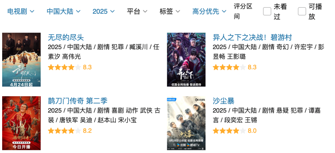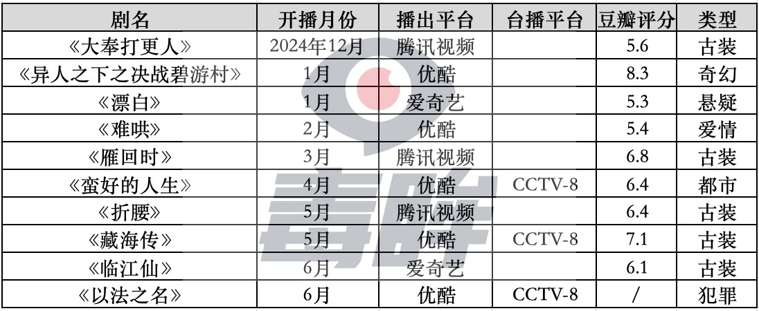 以市场普遍参考的豆瓣评分为准,8分以上通常被视为精品剧。按照这个评判标准,今年上半年称之为精品剧的仅有4部。