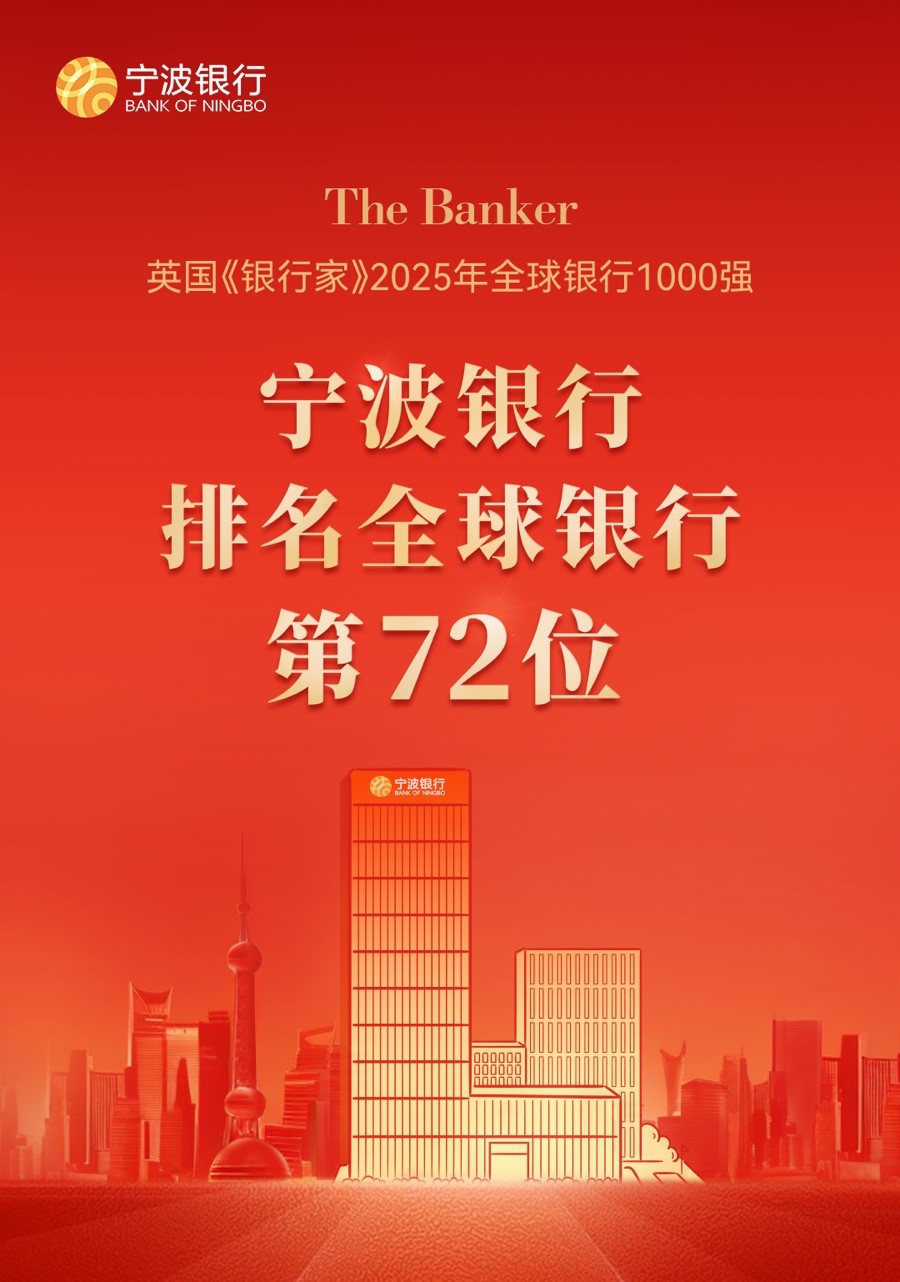 在历年发布的“全球银行1000强”榜单中,宁波银行排名逐年稳步攀升。2022年首次跨入“全球百强银行”行列,排名第87位;2023年至202年,位次提升至第82位和第80位;本年度,宁波银行排名再度攀升8位至72位,这显示出宁波银行的综合实力和核心竞争力持续增强。