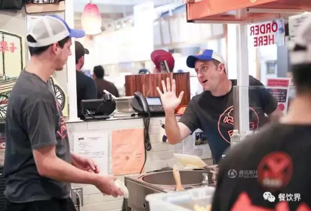 面对本土消费人群,老金却制作了一个中文招牌,其实,这何尝不是一种营销手段呢?利用顾客对新事物的好奇心理来吸引顾客正是外来餐品吸引客流的绝佳手段。我们看到,老金的煎饼铺子采用的是明档设计,对于美国人来说,煎饼的透明化制作过程无疑新鲜又有趣。在老金煎饼的顾客中,并不乏拿起手机拍摄并分享至社交网络的人,这无形之中也对老金煎饼起到了宣传作用。