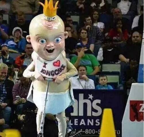 鹈鹕队的这个吉祥物完全就是为了吓哭对方的吧,敢赢球,晚上梦里找你哟。