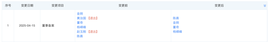 天眼查显示,今年4月,相宜本草董事备案发生变更,董事黄治国、赵玉刚退出,目前仅剩陈晨、金炯、董奇和杨嵘锋4人。
