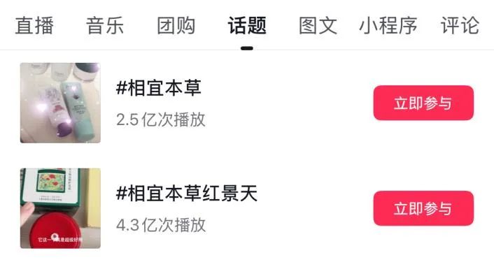 然而,与其他国货品牌善于利用社媒打造爆款、实现品牌快速崛起相比,相宜本草在社媒营销的创新性与话题制造能力上稍显不足。以抖音平台为例,完美日记、花西子话题播放量达数十亿次,而相宜本草话题播放量仅数亿次。