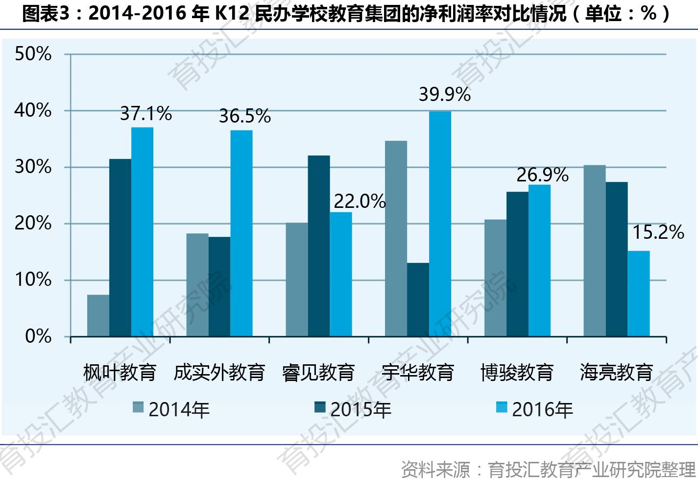 据公司年报显示,枫叶教育过去5年收入年均复合增长达到17.2%。2016年(截止2016年8月31日)枫叶教育的营收达8.30亿元,净利润3.08亿元。2014年11月上市后,枫叶教育净利润率持续上升,2016年达到37.1%,高于除宇华教育(39.9%)之外的其他几家港股上市教育公司。