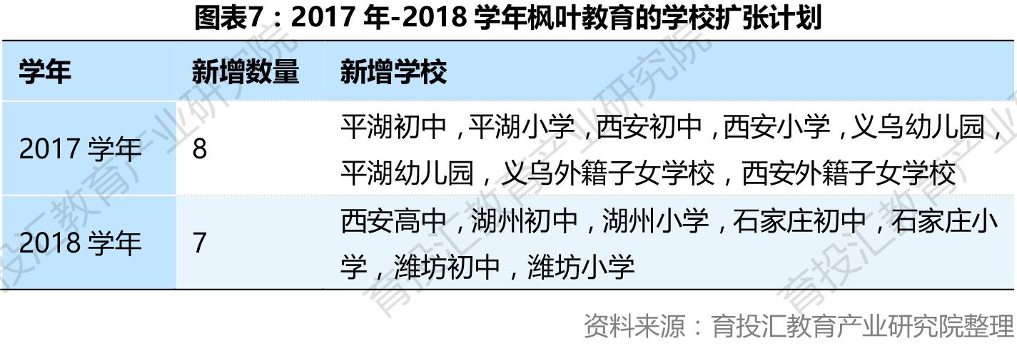 目前,枫叶、成实外、博骏等均已步入轻资产扩张的进程;枫叶还通过外延布局国内国外民办学校。枫叶教育公司确立的枫叶教育品牌成功吸引了地方政府及地产发展商与其合作,并形成了轻资产运营模式,目前公司的鄂尔多斯、洛阳、平顶山、天津区域的学校就已采用这一模式营运。未来,将有越来越多的地方政府愿意同枫叶公司展开合作建立新的枫叶教育学校。