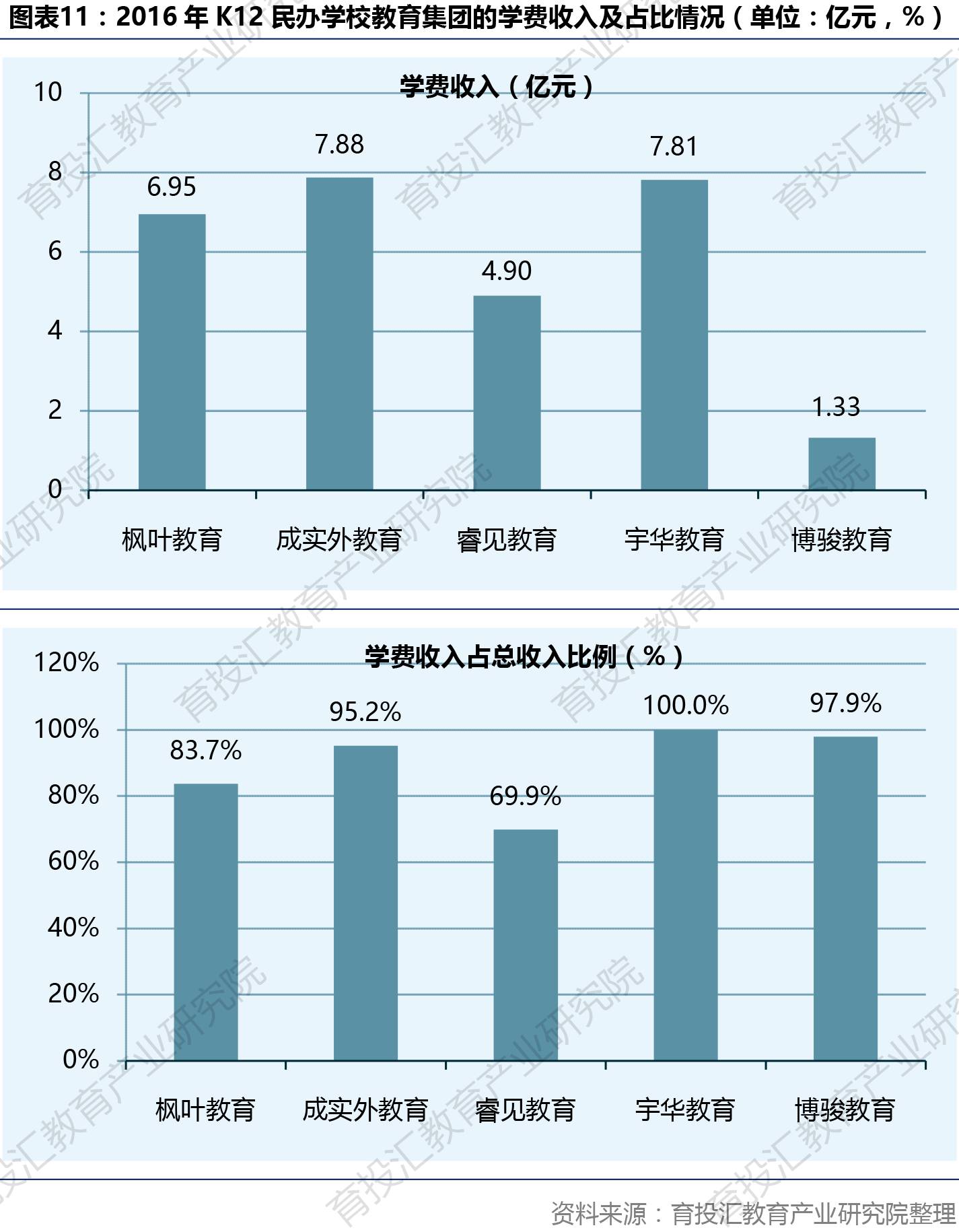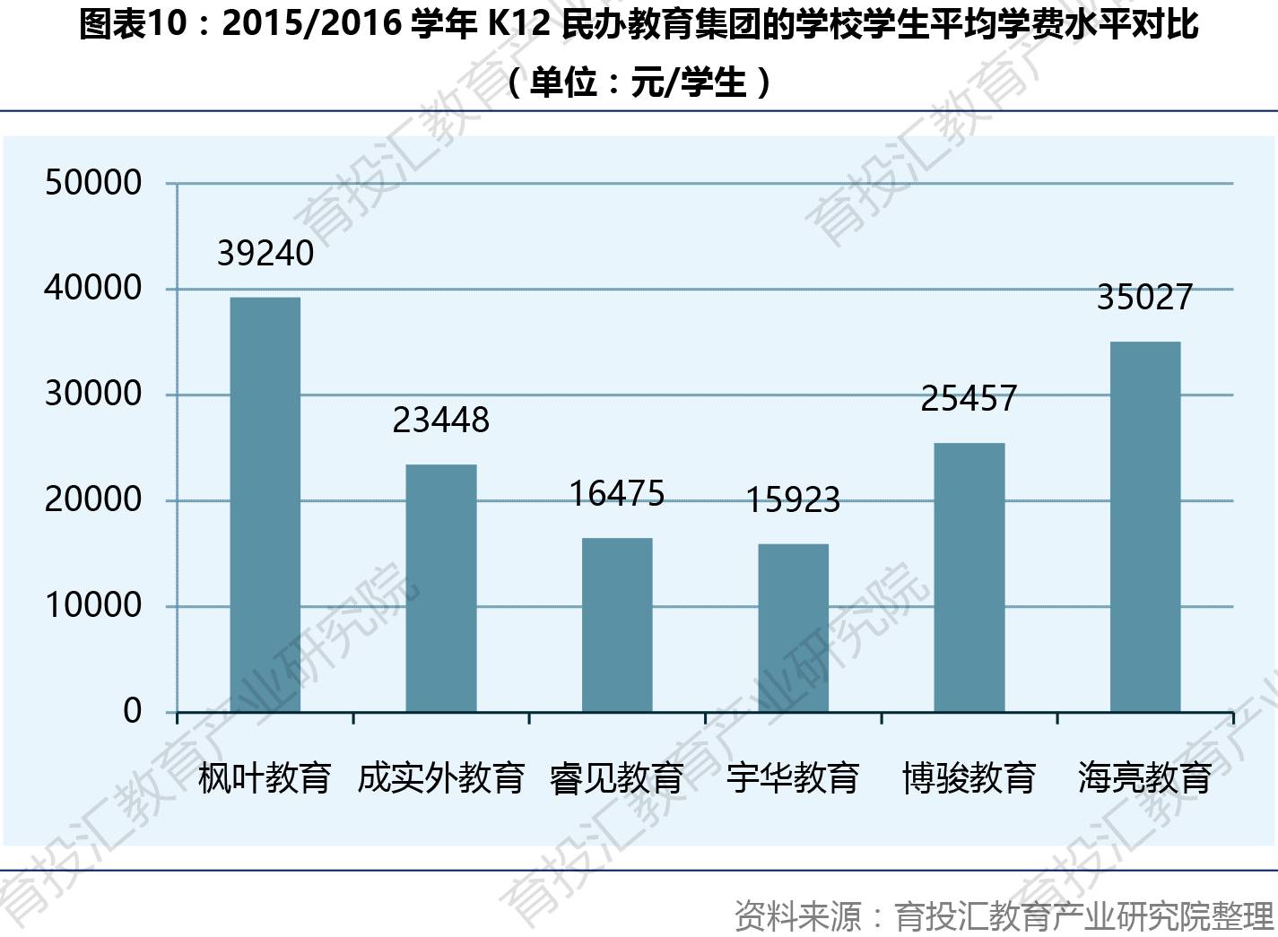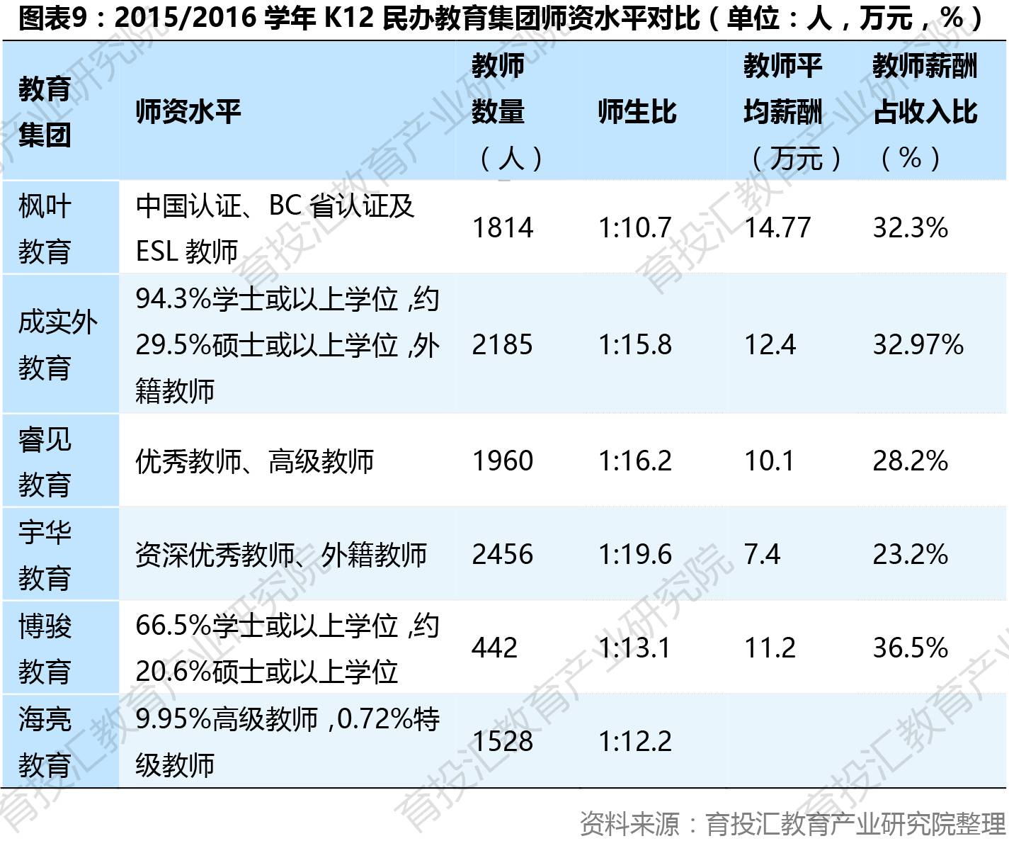 从师生比角度看,枫叶教育定位于小班化教学的国际学校使其师生比最低,2015/2016学年为1:10.7,也符合目前国际学校行业平均1:8-1:10的标准。这表明枫叶教育学校的学生能得到更多的教师辅导,从而能够更好地提高学生成绩,进而提高学生的升学率。