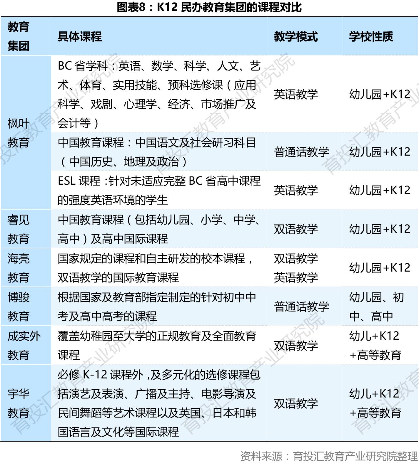 枫叶教育的业务核心是双课程及双文凭高中教育,其高中毕业生能获授得到完全认可的BC省(加拿大英属哥伦比亚省)文凭及中国高中文凭,使其学校的招生人数不断增加。而其他几家上市教育集团的下属学校并未提供系统的国际课程。