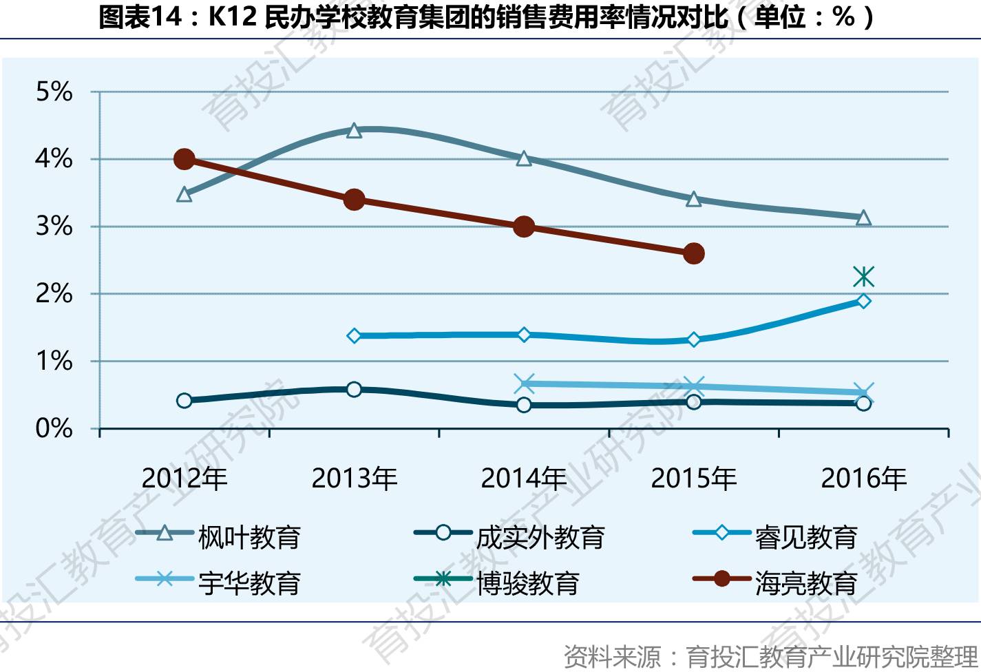 销售费用率方面,目前国际学校销售费用率普遍高于普通民办学校,普通民办学校的销售费用率低于1.5%。枫叶教育2016年销售费用率为3.5%,主要是在新开区域市场会使用招生代理。同时,枫叶教育构造了金字塔型生源结构(学生数量:小学>初中>高中),实行内部升学降低了招生成本,并提高了内部升学率,利于销售费用的管控。