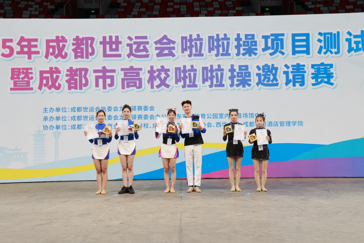 本次测试赛共有来自西华大学、银杏酒店管理学院共27支队伍参赛,涵盖双人花球、双人爵士、双人街舞三个项目,其中双人花球为成都世运会正式比赛项目。