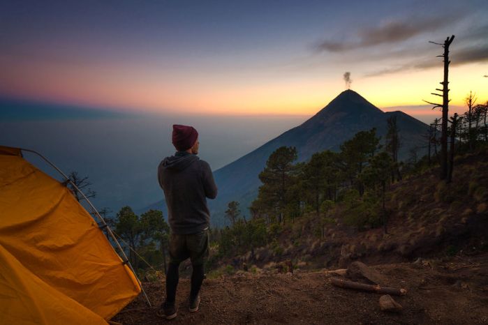 旅程开始前,我尽我能做的一切,仔细盘算了好几周。最开始,我用Photopills测算了银河的位置。然后我又用我在网上发现的工具,通过测算火山的规模、最近活动情况和在线摄像头,“尝试了解”这座火山。最后,我多次前往危地马拉,向当地气象站了解海拔3000米以上的气候。预测到一个晴空万里的天气,而我的其他测算数据也合适时,我决定去碰碰运气。