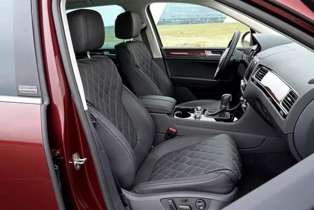 这四辆SUV“前后座椅加热&通风”,X5的后排加热和前排通风都是选装项目,余下三款全都是标配。但在座椅的“真皮”层次方面,2017款的大切诺基直接用上了Laguna豪华真皮座椅,途锐用的是比织物座椅仅高一个层级的Vienna真皮,X5用的是Dakota真皮,倒是XC90用了Nappa打孔真皮面料。