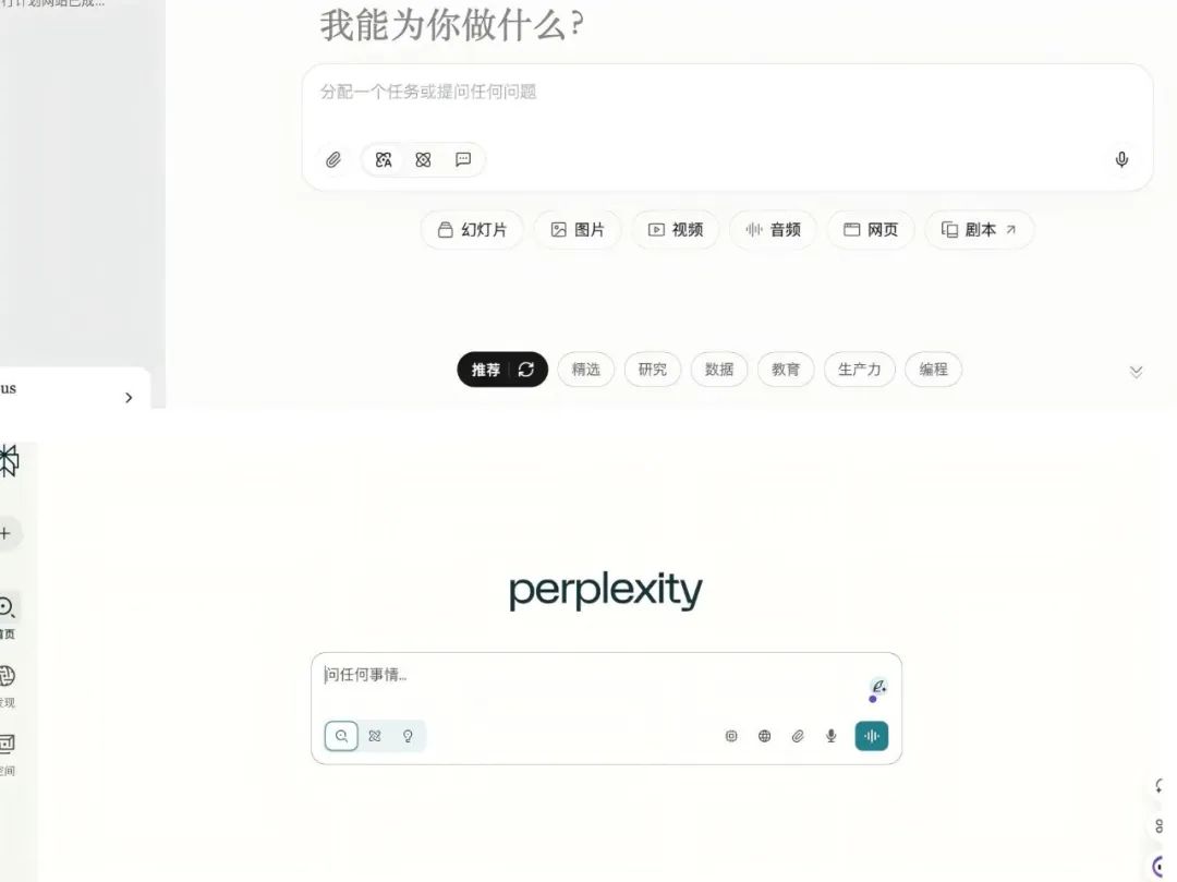 围观当下市面大多数的AI产品,卷写作刚需,将用户交互和UI设计为「对话框」已是常态,如果单看Claude、Perplexity、ChatGPT、Manus、DeepSeek等AI应用的界面截图,「对话框」是最简单直接的交互窗口。