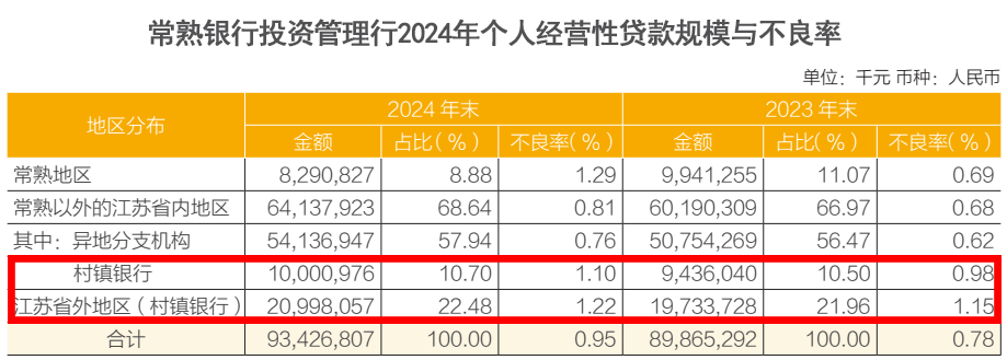 图 / 常熟银行个人经营性贷款规模与不良率分布(来源:常熟银行2024年报)
