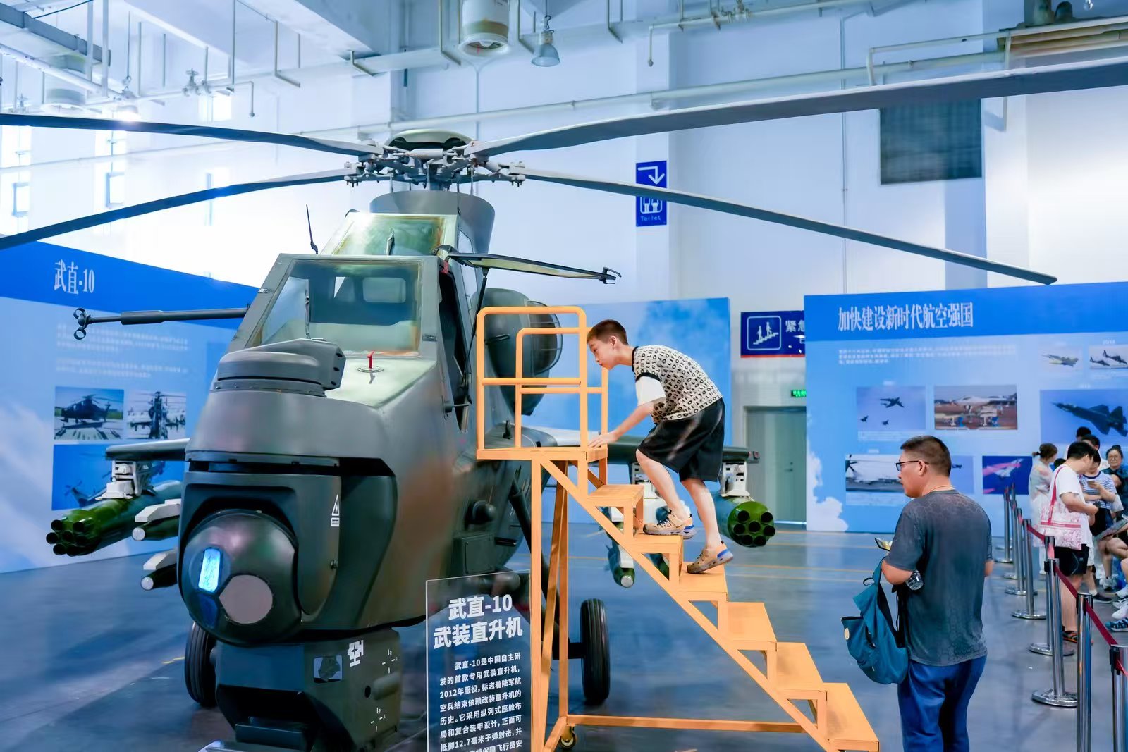 战机驾驶舱体验:1:1 比例的歼 - 10、歼 - 20 战斗机及武直10 模型开放驾驶舱体验,观众可进入舱内模拟操控,打卡拍照,感受战机驾驶员的视角。