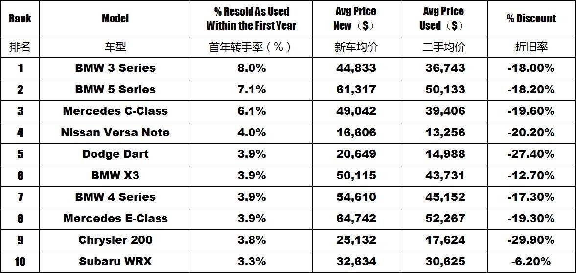 美国第一大二手车网站ISeeCar发布了最新二手车行业报告,评出1年内就转手卖出的十大车型,俗称买了就后悔的Top10。