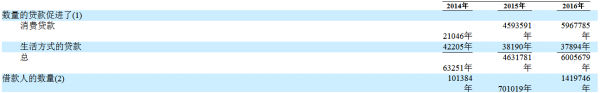 信而富也受益于2016年国内互联网金融业务、消费金融的爆发行情,2016年贷款人数达到142万人,同比增长超过700%,其主营业务,消费信贷(Consumptionloans)和生活类贷款(lifestyleloan)都在2016年出现同比大幅增长。因此不难理解的是,信而富虽然连续亏损加剧,三年不挣钱,但也正说明,它正处于高速扩张阶段,在行业激烈竞争之下,正在不断花钱争夺用户、扩大规模。