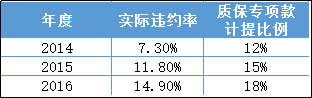信而富的生活类贷款在2014、2015和2016的实际违约率分别为7.3%,11.8%和14.9%。与此同时,质保专项款在14年至16年的计提比例为本金的12%,15%和18%,能覆盖损失。