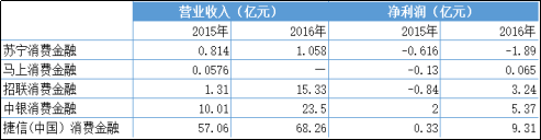 但事实上,2016年消费金融公司都过得不错,2016财年也成为多数消费金融公司扭亏年,其中,外资股东背景的捷信金融实现净利9.3亿元,同比增长超27倍;银行系旗下消费金融公司均实现盈利,只有一家产业系消费金融公司——苏宁消费金融因进一步“跑马圈地”而导致亏损扩大。