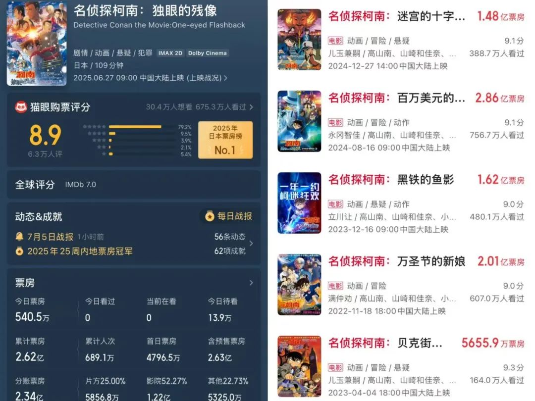 但咱们这边《名侦探柯南:独眼的残像》的表现,却有点未映先火的意思。待真上映了,口碑倒也并不如何炸裂。反而因为“近十年最好剧场版”的口号抬高了不少人的期待,看完觉得不过尔尔。