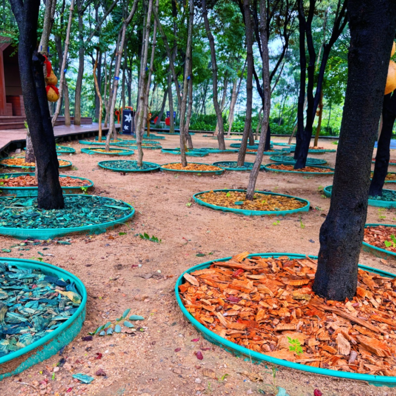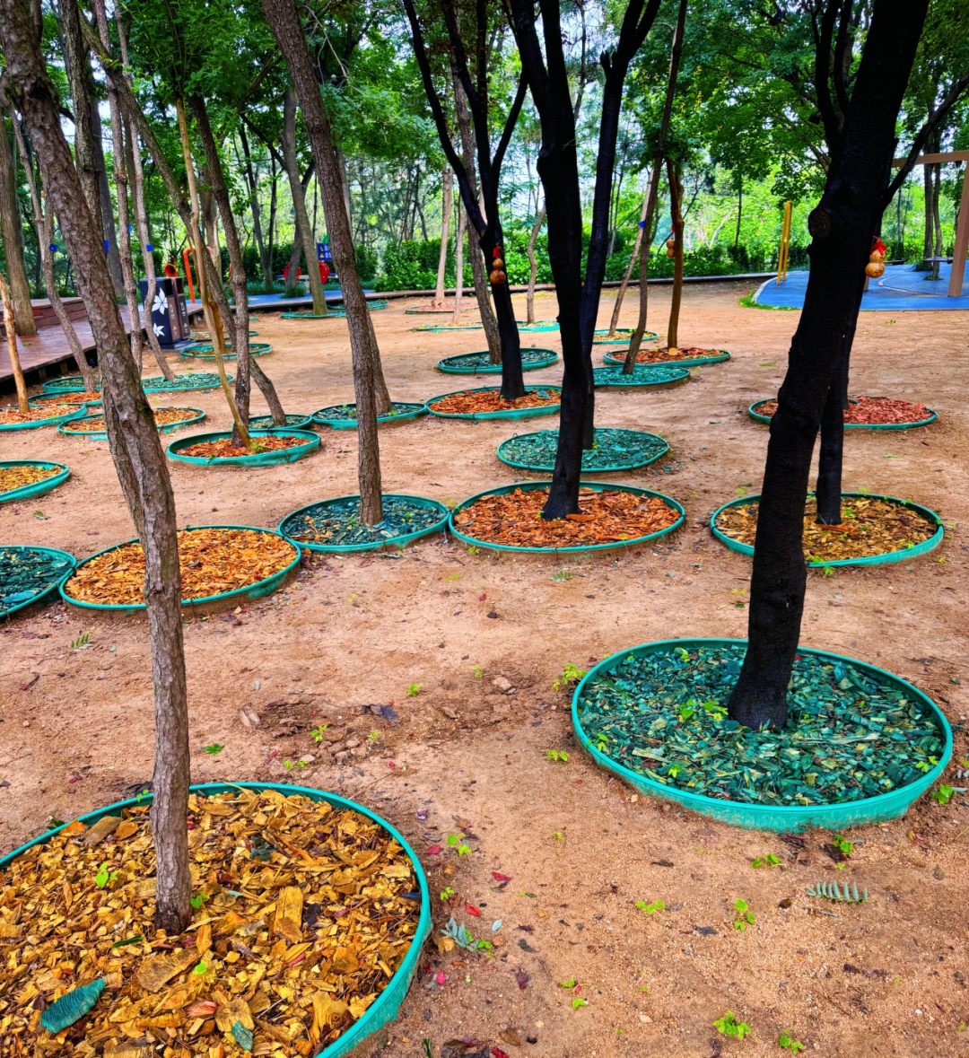 浮山保护管理中心收集修剪下的细枝末节,将它们打磨成五颜六色的“天然亮片”。深褐像巧克力碎,翠绿似抹茶粉,亮黄如柠檬屑。把这些彩色木屑撒在树根周围,原本灰头土脸的树坑立刻变身“时尚秀场”。雨天时,湿润的木屑会散发出淡淡的松木香,引来好奇的松鼠驻足。