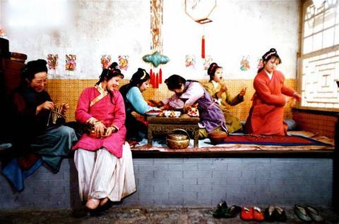 我们看,与花自芳母子的三个又一个百般的忙活相比,袭人的这个动作,一气呵成,先后用了四个“自己”。一方面宝玉是富家公子,自然不会用农家的俗器;另一方面,也透露出袭人与宝玉素日关系之亲密,且细想这个画面,明显有袭人作秀的成分在里面。