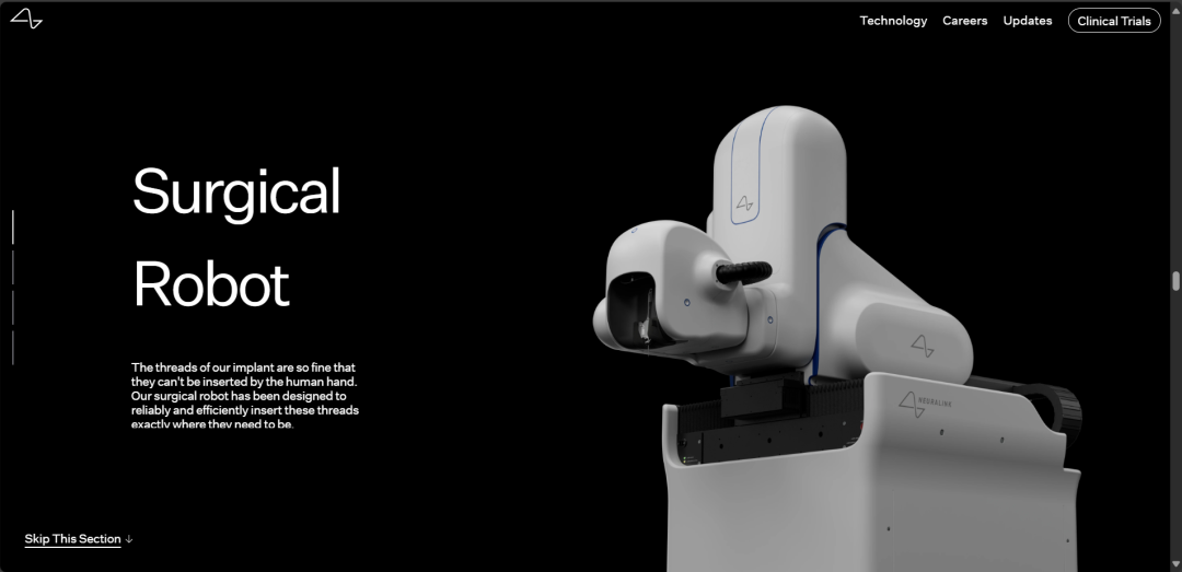 而Neuralink开发了一套系统,利用神经手术机器人在脑部28平方毫米的面积上植入96根直径只有4-6微米的柔性电极“线”,比传统坚硬的硅基电极更能适应大脑组织的柔软环境,对大脑损伤更小。这套电极线总共包含3072个电极位点,通过R1手术机器人以微米级精度快速植入大脑皮层,解码能力更强,穿戴也更加美观。