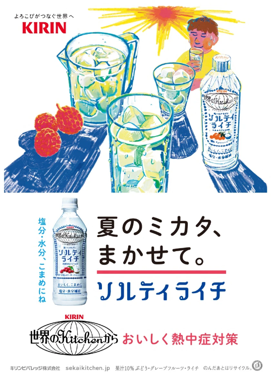 气候变化和社会推动的双重影响下,日本饮料企业对“防暑饮料”做了更多投入,也正是在这一年,麒麟推出了世界厨房 海盐荔枝味。